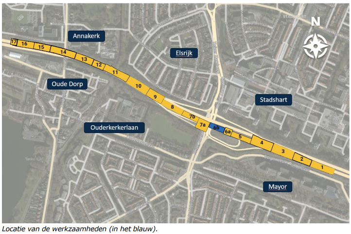 Op maandag 16 maart storten we tussen 07.00 en 19.00 uur beton voor een deel van de overkapping bij de Traverse. Dit gebeurt op het dek van de overkapping in compartiment 6B van de verdiepte ligging. Het beton moet binnen een paar uur na het storten met machines worden afgewerkt. Daarom doen we dit werk ‘s nachts direct na het storten: in de nacht van maandag 16 op dinsdag 17 maart. Op de afbeelding die op de achterkant van deze brief staat, ziet u de exacte locatie van de werkzaamheden.