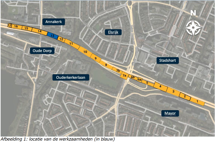 Op maandag 12 januari informeerden we u over het storten van een deel van de overkapping in compartiment 13. Dit gebeurt twee dagen later dan gepland, op woensdag 28 januari, tussen 7.00 en 19.00 uur. Het machinaal afwerken van het beton gebeurt hierdoor ook later, namelijk in de nacht van woensdag 28 januari op donderdag 29 januari, een paar uur na het storten. Bekijk afbeelding 1 voor de exacte locatie van de werkzaamheden. Het storten van een deel van de overkapping in compartiment 12 gebeurt nog steeds op vrijdag 30 januari.